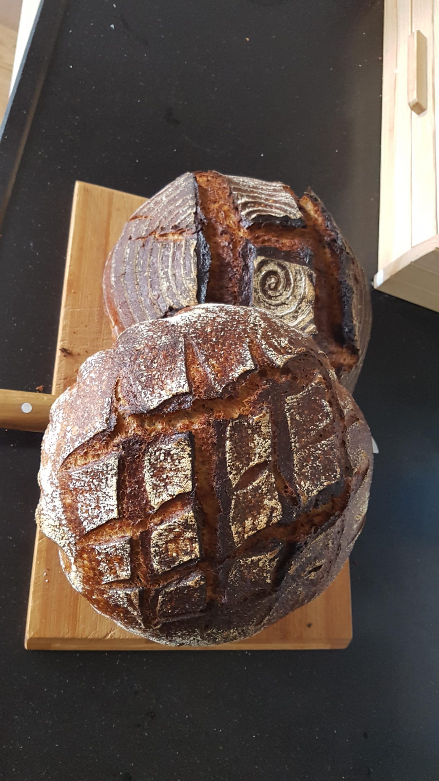 Een volkoren brood met tarwemeel , speltmeel en tarwebloem